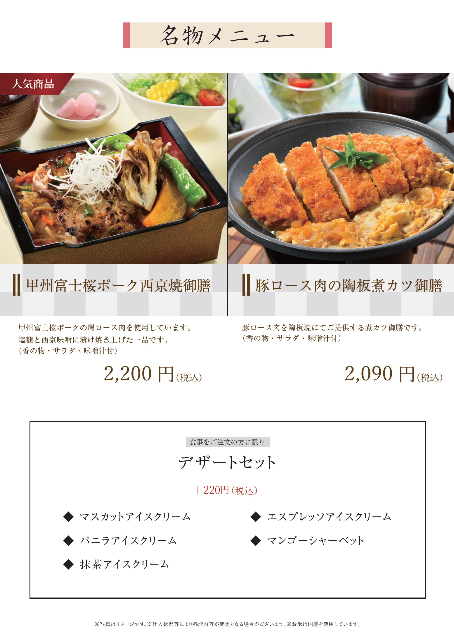 レストランに関してのお問い合わせは、TEL0554-62-6611までご連絡ください。(店長 宮下)